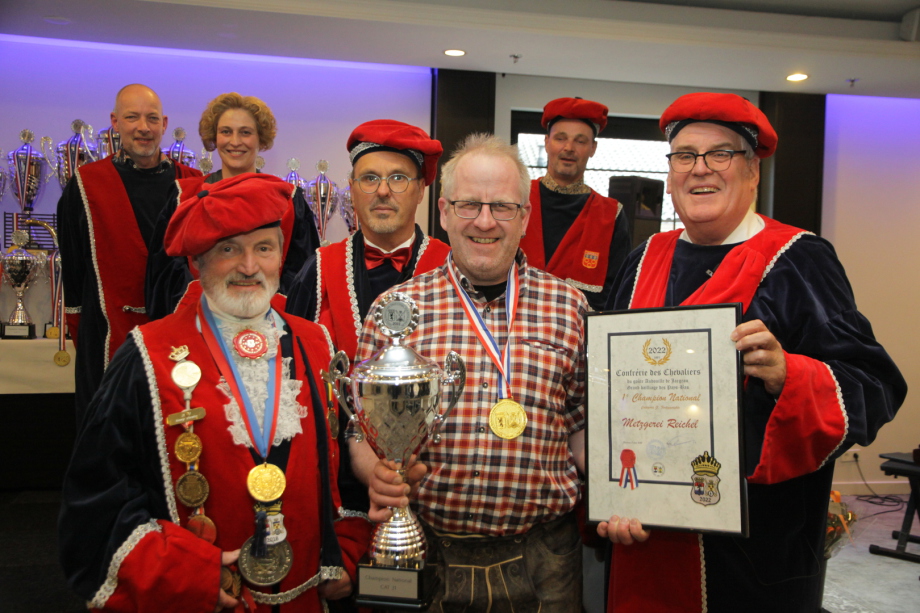 Im Rahmen eines Festabends fand die Preisverleihung im Theaterhotel der Grenzstadt Roermond statt. Die Vorstände der Confrérie in ihren traditionellen Roben überreichten Metzgermeister Klaus Reichel (49) den Pokal für den nationalen Meistertitel. Die meisten Punkte konnte er mit seiner Mannschaft für die Kategorie „Fertiggerichte im Glas“ verbuchen.
