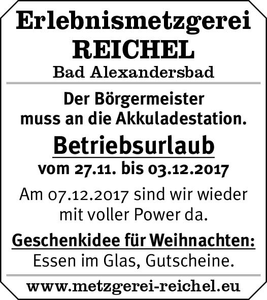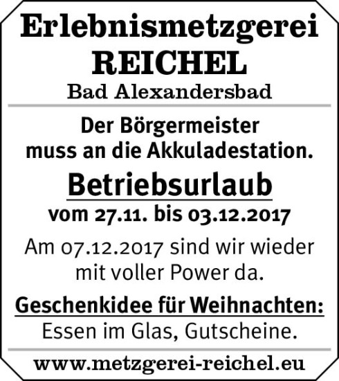 Betriebsurlaub vom 17.11. bis 30.11.2014